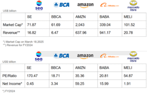 Kinerja turnaround dari Sea Limited membuat sahamnya naik signifikan belakangan ini, setelah naik banyak valuasinya apakah masih mahal? Perbandingannya dapat dilihat di bawah ini.
